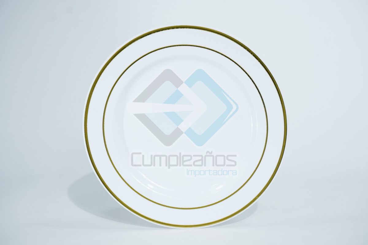 PLATO PLASTICO BLANCO PEQUENO FILO DORADO SET10 X1